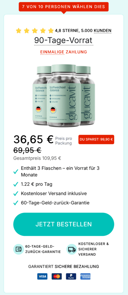 Hier unterscheidet sich Glucavit. Es wurde mit einer spezialisierten Mischung aus natürlichen Inhaltsstoffen entwickelt, die eine echte Unterstützung für gesunden Glukosestoffwechsel, stabile Energie und geistige Klarheit bieten – anstatt nur kurzzeitige Ergebnisse zu liefern.